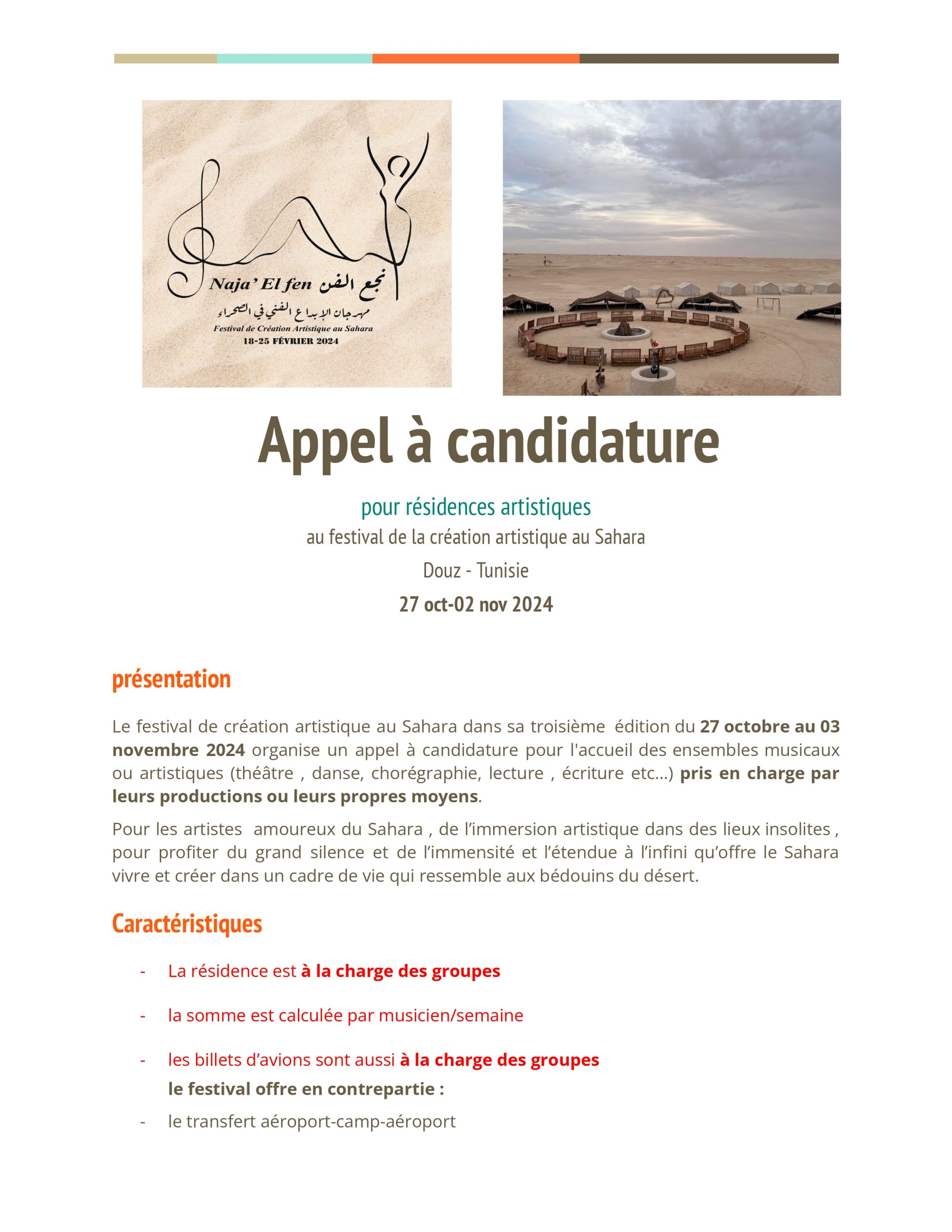 venez décourvir le Sahara et faites découvrir votre art à travers le Festival De Création Artistique Au Sahara « نجع الفن »