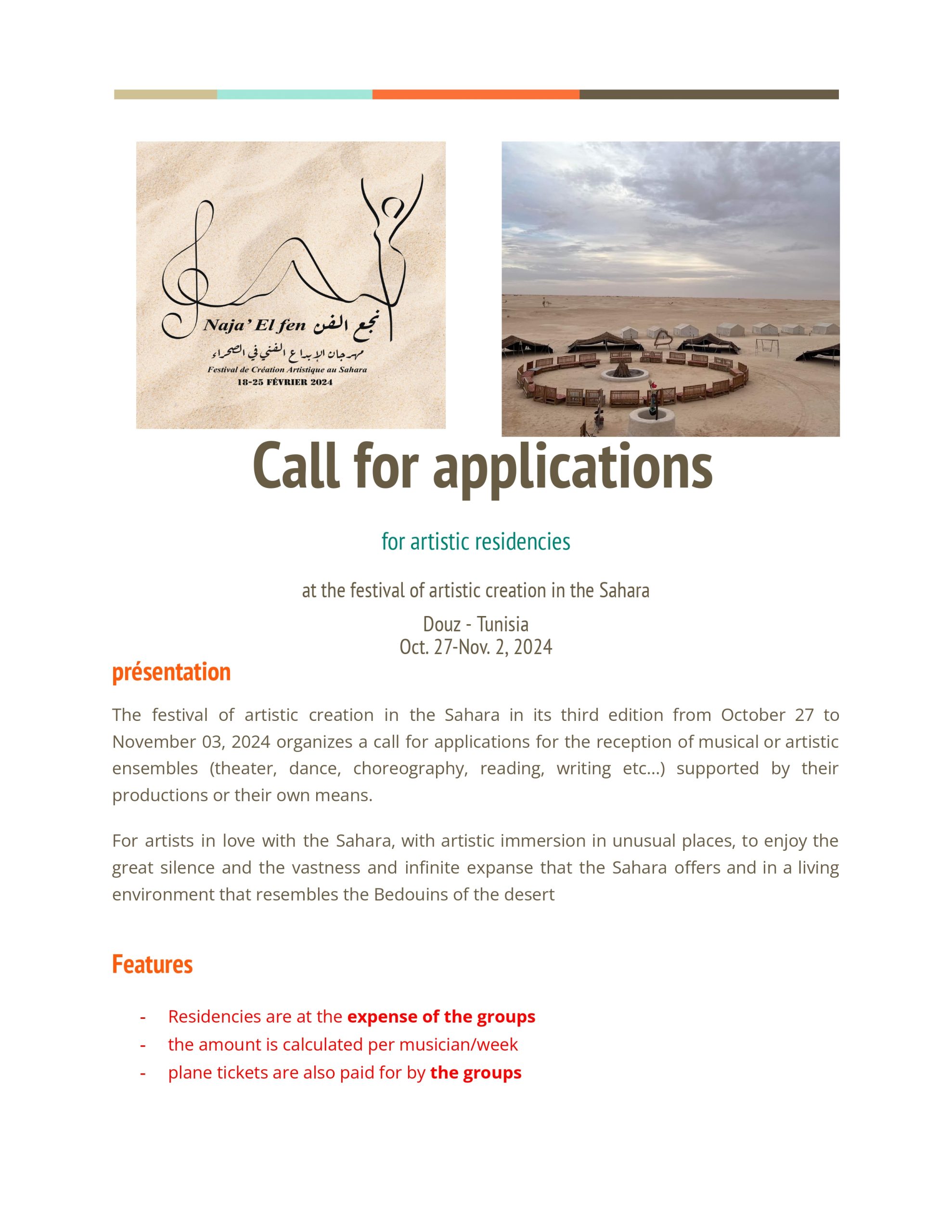 You are a group of artists, an artist… From any field of art, you are looking for an immersive and creative experience, this call is for you!